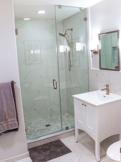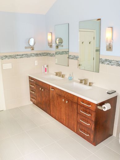 We install premium, custom-built soft-close cabinets and in-wall medicine cabinets that add functionality and elegance to your Bathroom. Our expert team also fabricates and fits granite countertops, including bullnose edges and undermount sink cutouts.